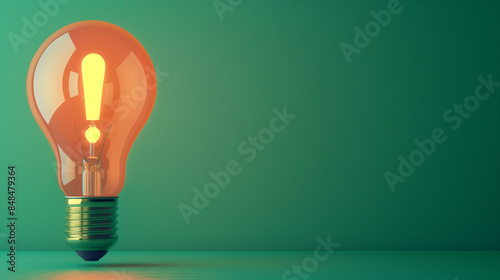 green light bulb with exclamation mark on a green background