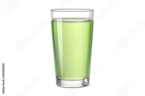 Green liquid in glass on transparent background, drink refreshment view.