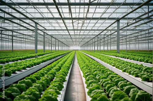 Green lush lettuce flourishes methodically within enormous new-age conservatory