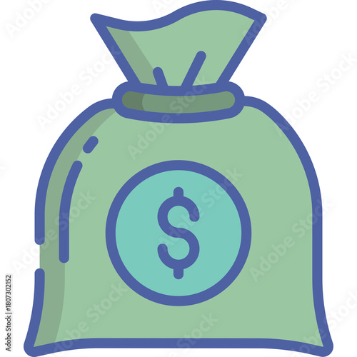 Green Money Bag With Dollar Sign Icon And Outline On Transparent Background
