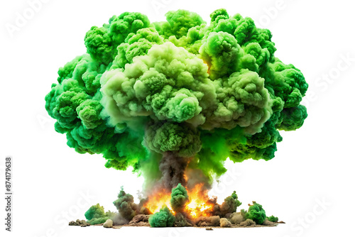Green Nuclear Explosion On Transparent Background, Green Bomb Explosion, Green Color Explosion
