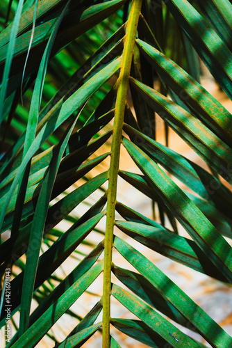 Green palm tree leaf in daylight