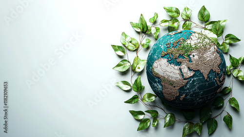 Green Planet Earth: A Vibrant Globe Surrounded by Lush Leaves
