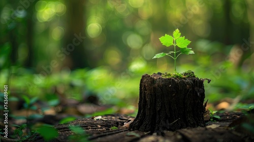 Green Plant Emerging From a Tree Stump in a Forest
