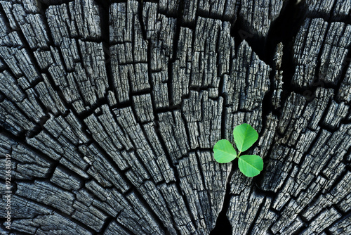 Green plant leaf on wooden background