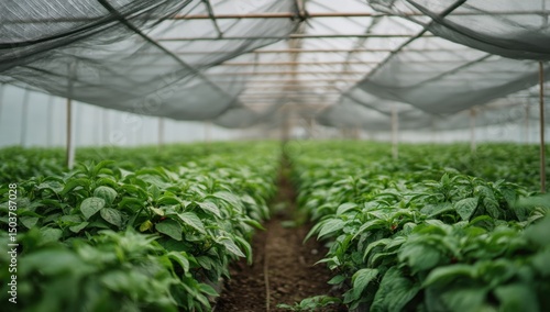 Green plants in greenhouse vegetable cultivation