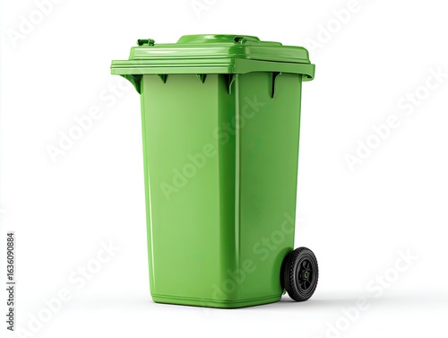Green plastic trash can