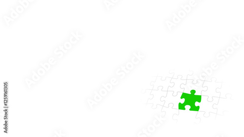 Green Puzzle Piece Jigsaw Connected with Blank Pieces Lower Right Corner Background, Vector 3D Fade Effect
