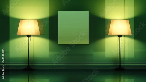 Green room, lamps, artwork, night, interior, mockup, design, advertisement