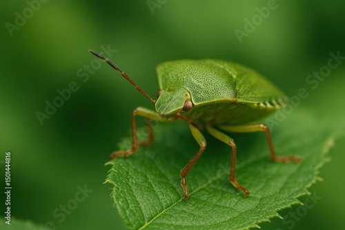 Green shield bug on leaf