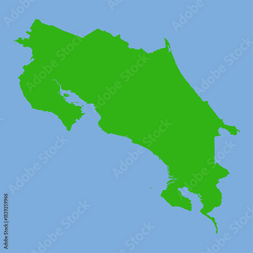 Green silhouette map of Costa Rica in flat vector style with clear country shape and regional boundaries on a light background