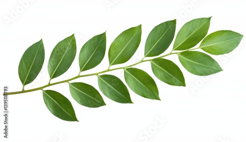 Green Sprig with Speckled Leaves Isolated on White