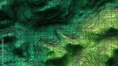 Green topographic contour map with grid lines.