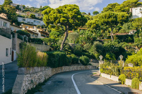 Green trees in Nice Plum bushes and palm-colored color on the road