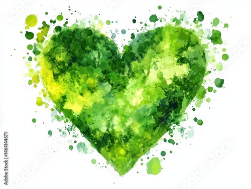 Green Watercolor Heart. Bright and Vibrant Hand-Drawn Abstract Paint Texture with Speach Bubble Heart