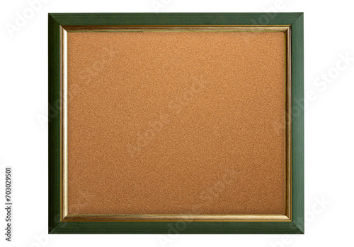 Green wooden frame cork board on white background. png isolated background. cork board blank
