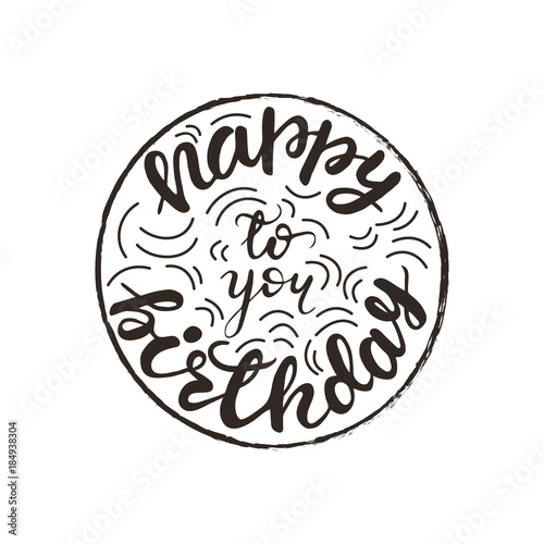 Greeting card design with lettering Happy birthday. Vector illustration.