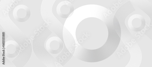 Grey abstract background with white circle lines. Minimal lines pattern. Modern futuristic concept. Vector illustration.