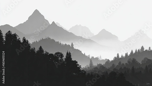 Grey mountain range with misty valley