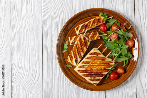 Grilled Greek Halloumi Cheese on sticks, top view