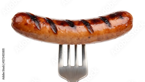 Grilled Sausage on Fork - Juicy Bratwurst with Char Marks for Your BBQ Delight, a Savory Treat for Meat Lovers and Outdoor Cooking Enthusiasts.