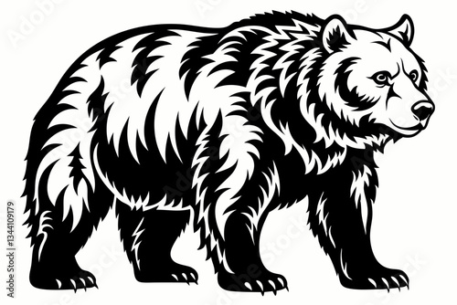 grizzly bear line art silhouette vector illustration
