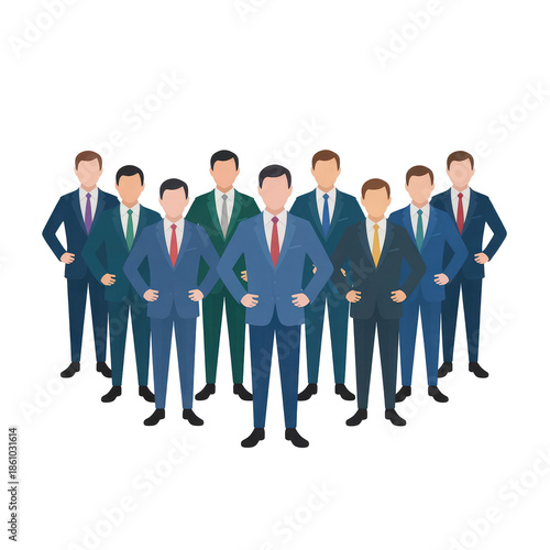 Group of businessmen in suits isolated on transparent background