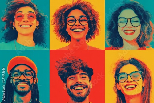 Group of cheerful multi-ethnic young adults enjoying life and expressing positivity with vibrant colors