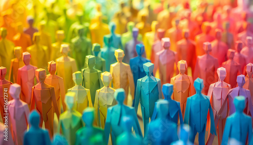 Group of colorful figures standing together, representing diversity and unity