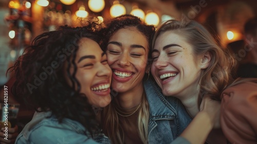 Group of friends showing happiness and camaraderie, perfect for social media posts or advertisements about female friendship and community