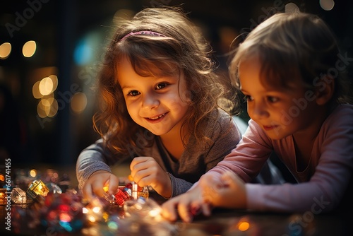 Group of kids playing with building blocks