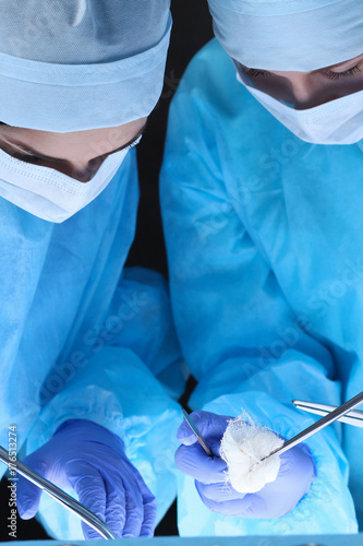 Group of surgeons at work while operating at hospital. Health care and veterinary concept