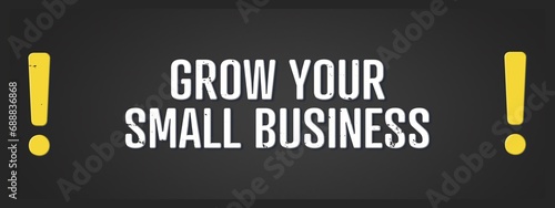 Grow your small business. A blackboard with white text. Illustration with grunge text style.