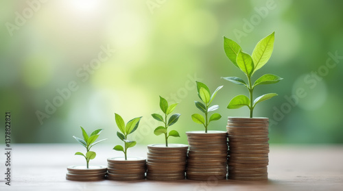 Growing plant on stacked coins symbolizing financial growth, investment success, and wealth accumulation over time