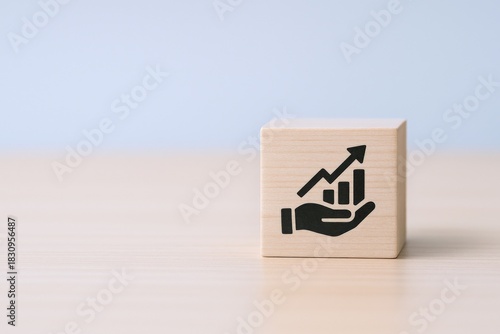 Growth Concept Displayed on Wooden Block: Hand Holding Rising Graph, Financial Success, and Positive Trend