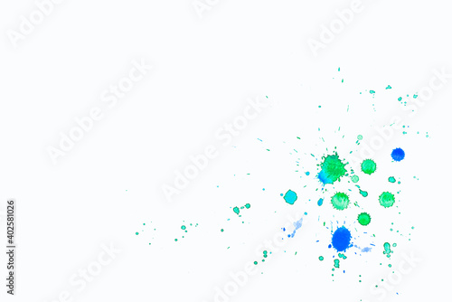 grüne und blaue Spritzer und Kleckse mit Aquarellfarben