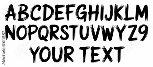 Grunge alphabet lettering, uppercase letter forms with brush strokes design