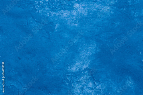 Grunge classic blue concrete background. Textured plaster wall. Creative backdrop for your design. Color of the year 2026 concept. Top view, layout for design. Surface with peeling shabby pattern.
