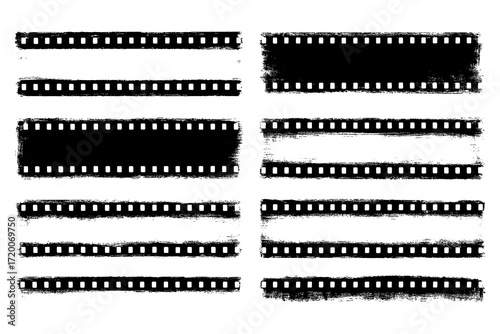 Grunge film strip borders and frames with distressed texture, Transparent Background