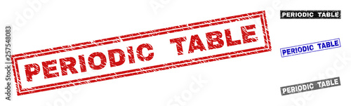 Grunge PERIODIC TABLE rectangle stamp seals isolated on a white background. Rectangular seals with grunge texture in red, blue, black and gray colors.