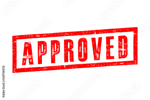 Grunge red approved square rubber seal stamp on white background