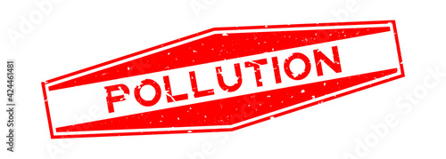 Grunge red pollution word hexagon rubber seal stamp on white background