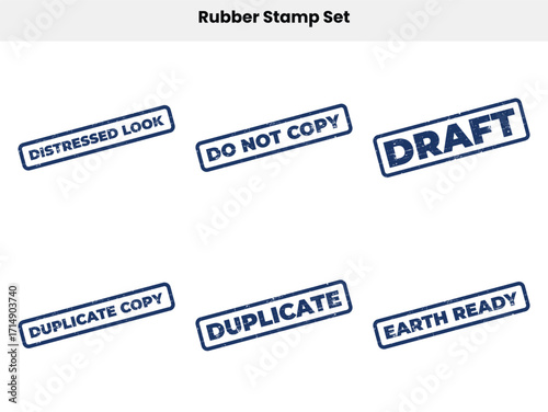 Grunge Rubber Stamp Set Featuring Distressed Textures, Draft, Duplicate, Earth Ready