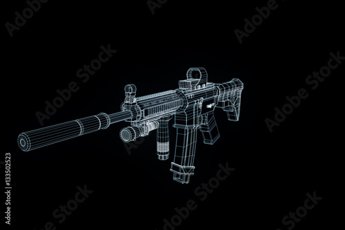 Gun Weapon Hologram Wireframe in Motion. Nice 3D Rendering