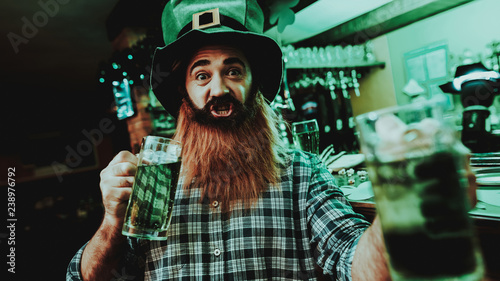 Guy In The Leprechaun Cap Is Drinking A Beer.