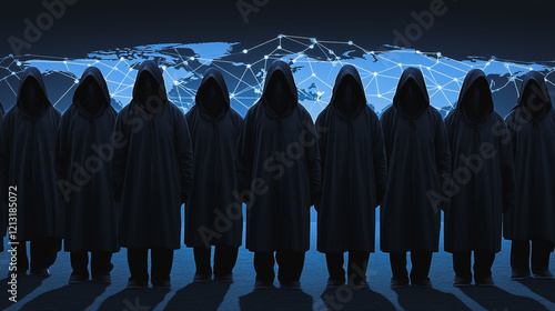 Hacker are planning to hack and attack networks and cyber security systems.team people innovation connection of line from nail node to node on map background , networking concept