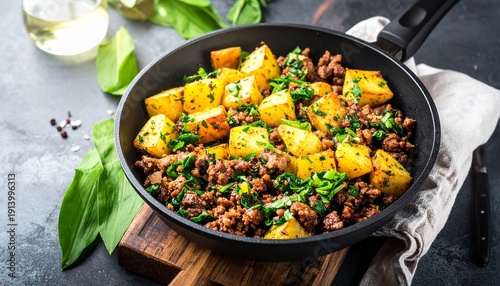 Hackfleischpfanne mit Bärlauch und Kartoffeln