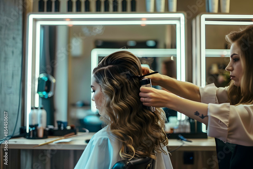 Hairdresser styling hair in a salon