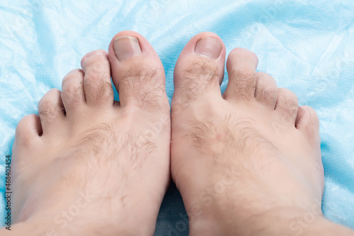 Hairiness on the toes of a person, macro. Hygiene and cosmetology concept, hair removal