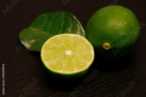 half and whole lime isolated on a black background